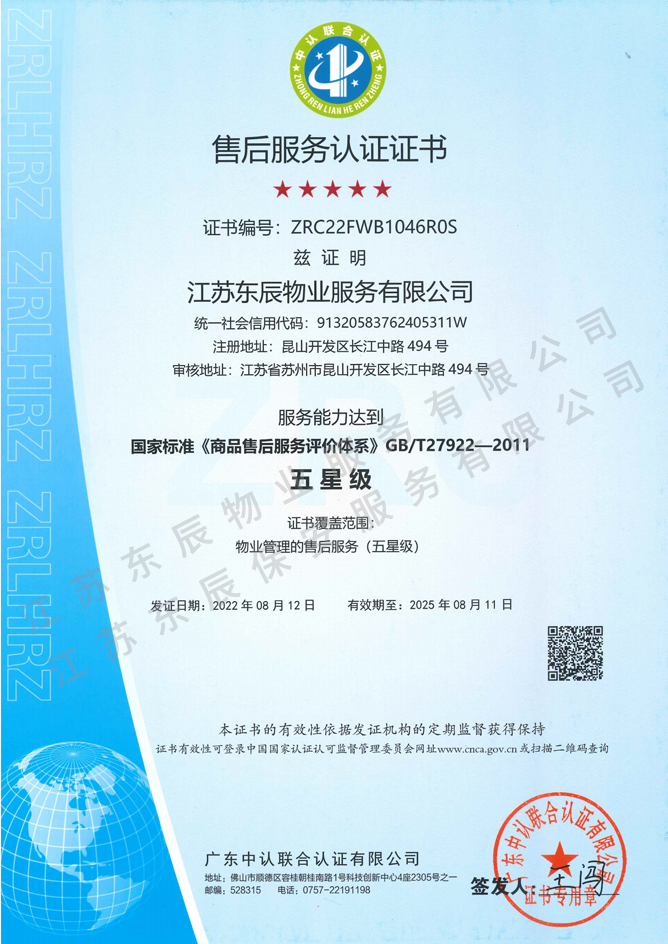 2022-2025年售后服務(wù)認(rèn)證證書(shū)